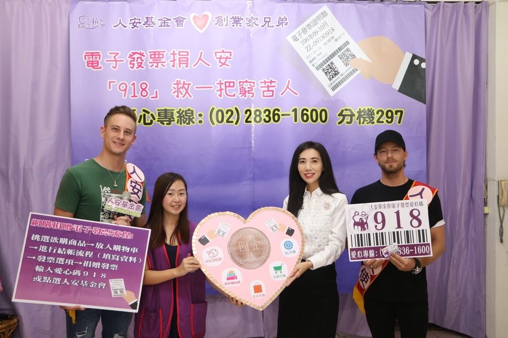 近年來政府積極推動電子發票,雖然也有愛心碼,但許多民眾仍不知如何捐贈發票,以今年為例,截至9月電子發票共開立48億張,但捐給社福團體僅有2200萬張,其中人安基金會的電子發票只有6500張,連0.02%都不到,為了推廣人安基金會愛心碼「918」今天他們找來藝人法比歐與馬丁擔任愛心大使,呼籲大眾捐發票獻愛心,幫助寒士常年服務不間斷。