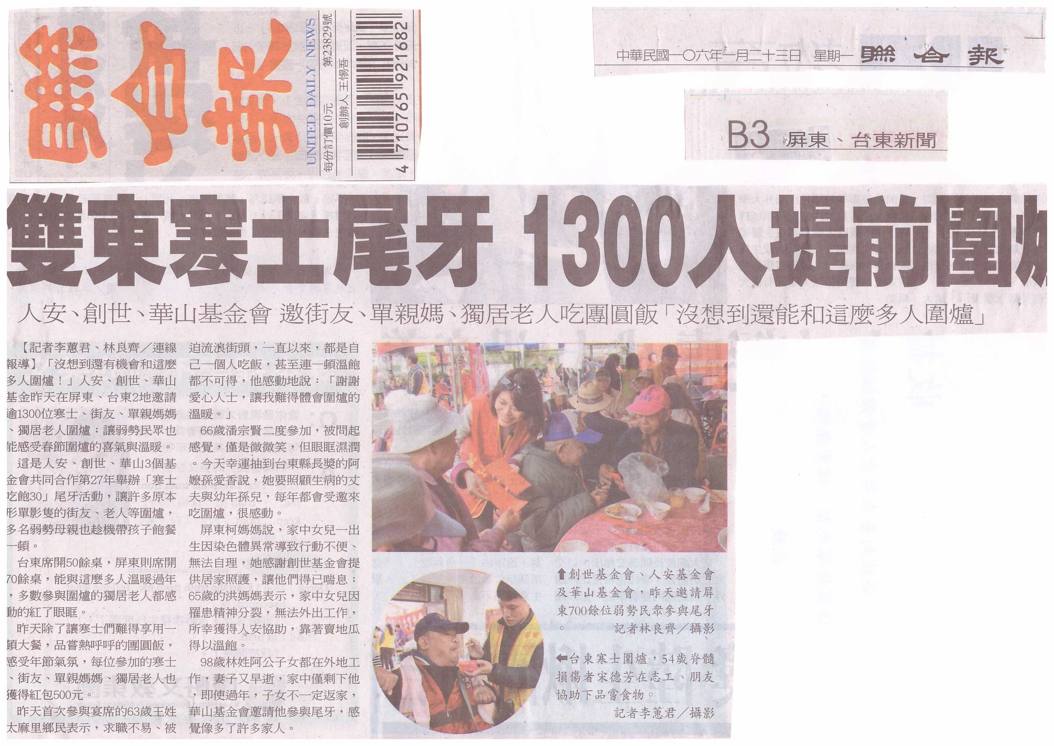 人安、創世、華山策略聯盟,盼匯集社會愛心為寒士(街友、待拉單媽、社會邊緣人)辦理第28屆寒士飽30尾牙,將於107年2月4日(日)全台16場同步辦理,預計邀請4萬名寒士,善款如有結餘,作為常年服務之用。