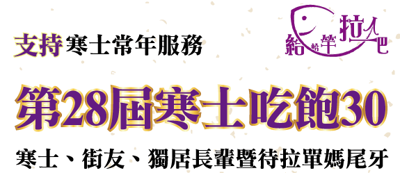盼大家共同支持全台16處辦理第28屆寒士吃飽30尾牙。